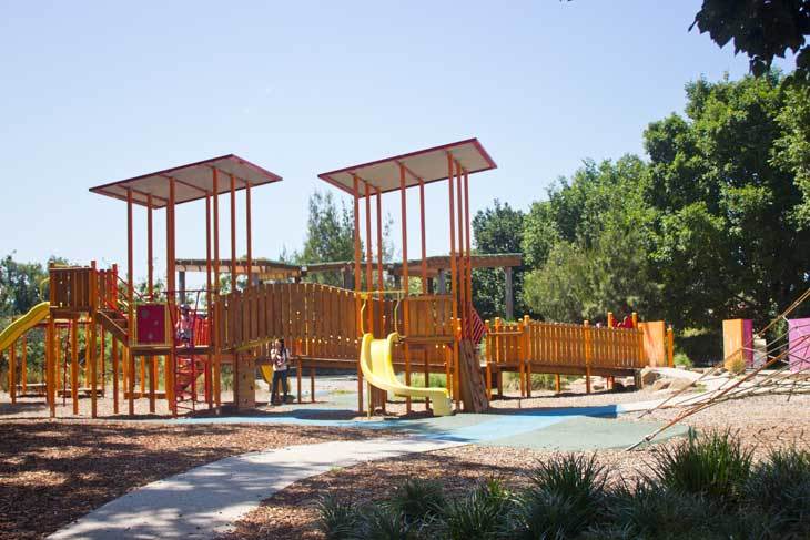 The king of free water play parks in Melbourne also has an extensive playground for those months when water play is the last thing on your mind!