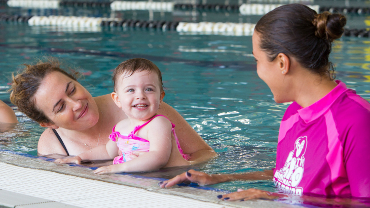 Rob Tweddle the Manager of Sports Programs at Macquarie University Swim School says the benefits of swimming lessons are more than just water familiarisation and social interaction. "Our lessons also give babies the chance to explore their surroundings, while engaging them through play and developing their hand–eye coordination and other cognitive skills."