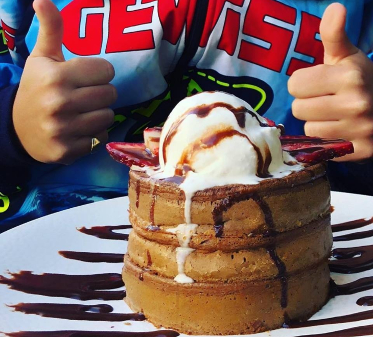 We like that they do savoury pancakes too, which make pancakes perfectly acceptable for dinner, right? The kids' 'Ned Kelly' buttermilk pancake comes with whipped butter, scrambled egg and bacon.