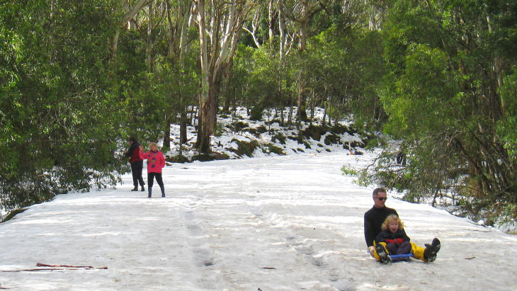 It is a very popular destination for Melbourne families to do some snow play and enjoy toboggan runs. There are 3 different toboggan runs, a designated snow play area, barbeques, car parking, toilets and a scenic drive up to the summit. Families are welcome to bring their own equipment. Toboggans are available locally as well.