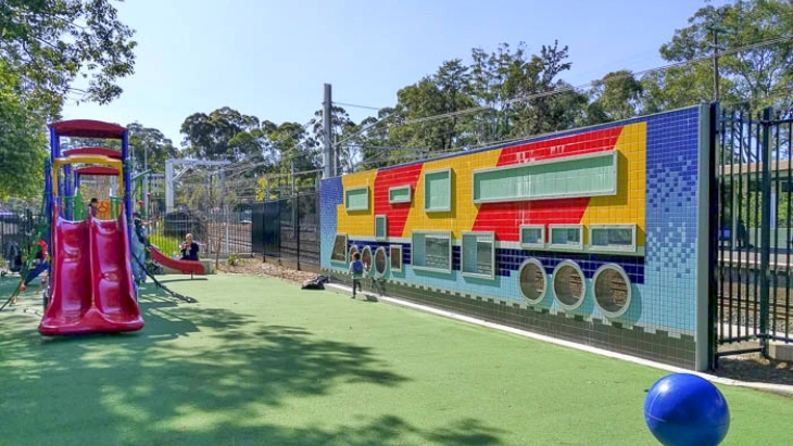 It's gated, it's shaded, it has a train theme - enough said! This is heaven for toddlers and their parents. Way over the bridge in the northern suburbs of Beecroft, make this playground a destination and arrive there by train - it's right by the station. Parents love the gorgeous train themed mosaic wall with windows, and kids will love watching the trains through these.