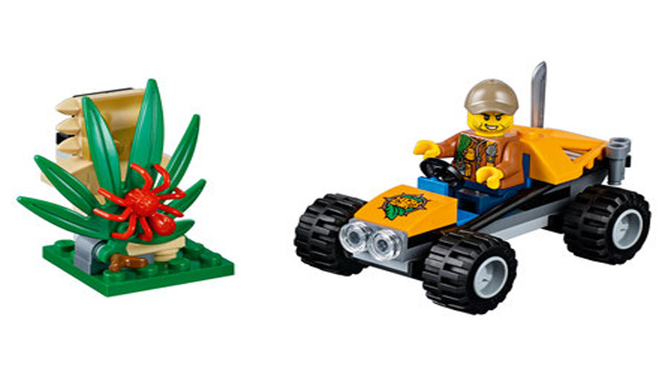 Perfect for the little explorers! Discover the wild side of the LEGO City jungle with the jungle buggy featuring a mini figure cockpit and space in the back for machete and binoculars elements, plus a buildable statue with a hidden diamond and a red spider figure.