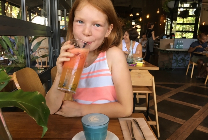 My breakkie date orders a babycino to start, which she downs happily in under a minute, before moving onto her watermelon and passionfruit juice, slurping up every last bit.