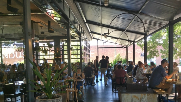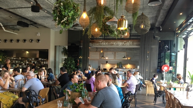While some industrial-style cafe spaces can look empty and sterile, the high ceilings here have been fitted out with hanging rustic downlights and greenery, which give the space a more homely, cosy feel. The venue is packed (with up to a 45 minute wait time if you haven't booked), and so there's no lack of atmosphere either. There's a good mix of groups of families and friends catching up over coffee and smashed avo, and little ones haven't been left out of the equation - you'll find plenty of pram space and high chairs here.