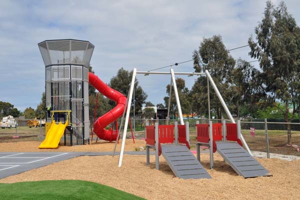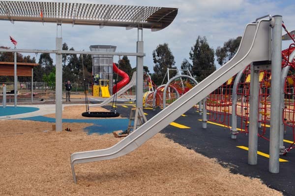 Alongside the playground, the rebuilt park includes exercise equipment, plenty of green grass to kick a footy on, a scooter and bike track, community garden, and picnic area.