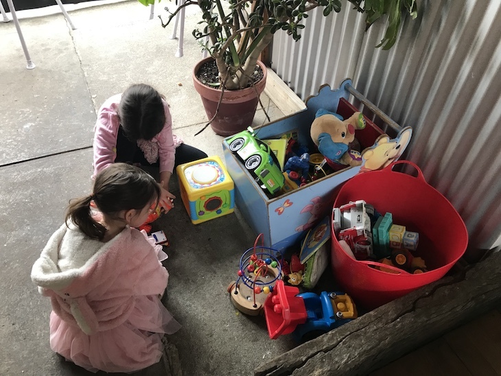 What makes the cafe kid-friendly - kid's play area in the kitchen-garden courtyard, a chicken coop full of friendly chickens, dedicated kids menu, high chairs, friendly, kid-focused staff