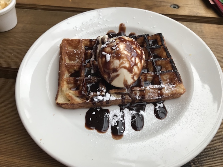 We also watched greedily while the kids polished off a waffle with ice cream and chocolate sauce from the Hatchlings menu ($8.50) for dessert!