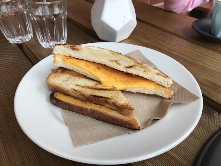 We opted for a long black ($3.80), organic turmeric latte ($4.50) and babycinos ($1.50ea) to start, and the girls shared a kids' toastie ($5.50) and a bowl of beer-battered chips ($8, the aioli was outstanding).