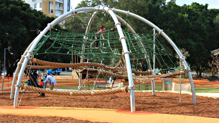 Another fresh new playground has popped up in the inner south-west suburbs of Sydney. Cahill Park Playground In Wolli Creek officially opened this month but expect lots more to come. The Cahill Park Masterplan is being progressively being rolled out over the coming months and we hear a cafe is on its way!