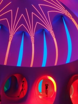 Mado Ehrenborg from Achitects of the Air writes “The installation awakens all the senses, creating a sense of wonder and enchantment for all ages. Visitors are transported and immersed into an amazing world of light and subtle and saturated hues, for a unique sensory experience, and brings visual art in places where you wouldn’t expect it. It is a paradox that such a stimulating environment can simultaneously be so calming and comforting. Many people find it a place for rest or meditation”.