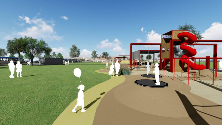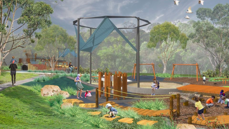 The playground will include shade structures, seating and BBQ areas as well as an exciting range of equipment including a climbing tower with bridges, slide and fireman pole, rope courses, tunnels, teepee, rock and stick play, tunnel slide, spinner, swings, sand pit, see-saw and imaginative play spaces. It will be suitable for children of all ages and will encourage adventurous and imaginative play. Construction dates haven't been set yet, so keep your eyes peeled.