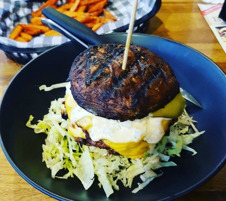 Lettuce leaf or grilled mushroom 'buns' are also available for low carbers or the health conscious.