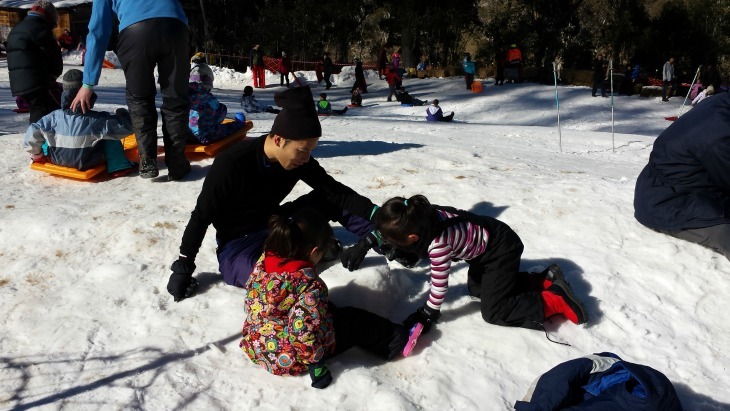We arrived at Corin Forest on a bright, sunny morning. In amongst a forest of green we suddenly saw two large football field patches of white, dazzling snow! “Real (man-made) snow!” our kids cried! It’s true. When the conditions are right, Corin Forest does actually receive real snowfall. However they also have snow guns that run overnight, to ensure a constant supply of the good stuff.