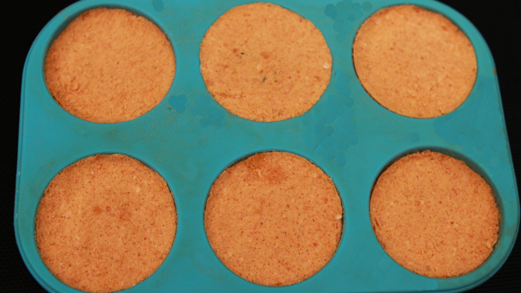 4. Scoop the mixture into the silicone moulds so that they are ½ to ¾ full. Press the mixture so that it is packed down tightly.