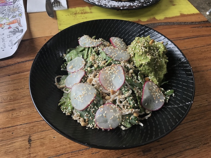 My 4-year-old opted for the pancakes, I the Japanese-style soba noodle salad with green beans, herbs, nuts and avocado ($7) with some chips ($5.50) to share. We were well-fed!