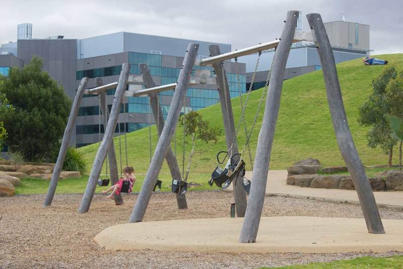 Built adjacent to the Royal Children's Hospital, the area was lauded for being sensitive to "the local heritage of place by focusing on the seven seasons of the Wurundjeri as well as respecting the highly valued character of Royal Park"