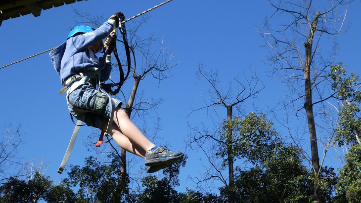 The courses are set amongst towering gum trees and the whole area is quite picturesque. There is a large area for 4-7-year-olds and it is in this section that adults supervise the kids from the ground. Then there are Green (8+ years), Blue (8+ years), Red (10+ years), Black (13+ years), and Extreme Black (16+ years) courses. The views from the Extreme Black course must be incredible.