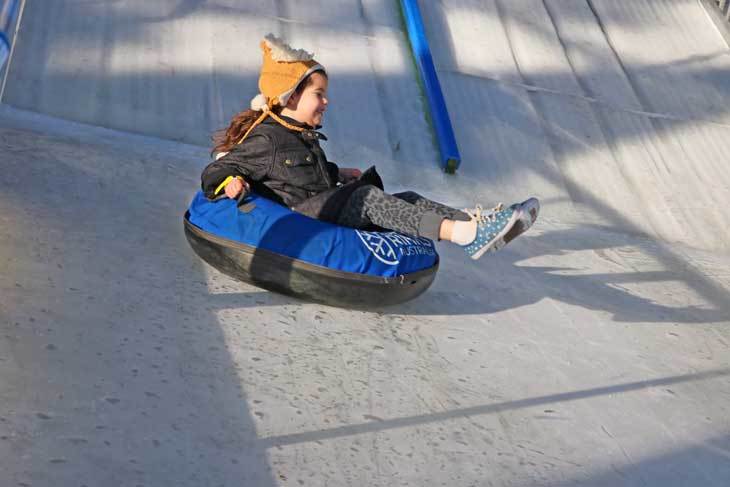 There are two sizes of ring to slide down on, with the kids getting their own smaller version for fast fun. There are also helmets available for use.