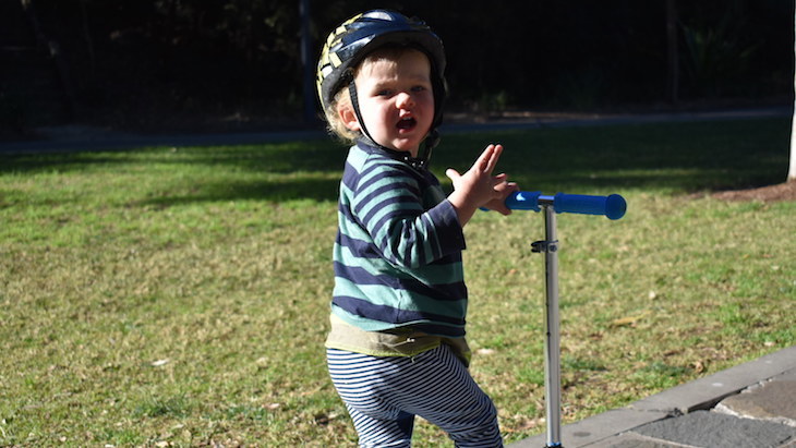 “I must admit I was a bit nervous about his first attempts at balancing himself on the scooter. But after only 2 clumsy stumbles, he got the hang of it real quick and was soon cruising along happily. The scooter was just the perfect size for him and the low set foot base for incredibly stable and safe for a first timer. We're amazed at how easy it was for him to familiarize himself with his pushing technique. How cool was that! We totally underestimated the power of Zoomy scooters.”