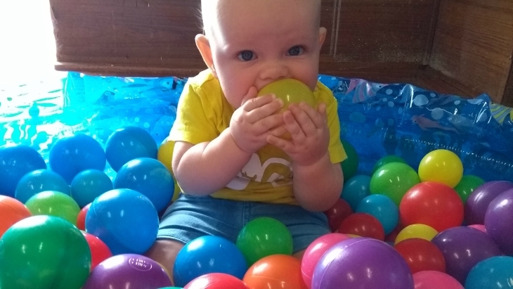 Sebastian liked to explore the room and different activities during the free play. He made himself at home in the ball pit picking up the different coloured balls and throwing them away.