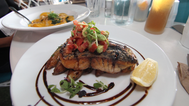 We didn’t have to wait long for our mains, and they came out piping hot. The adults had the pumpkin ravioli and Barramundi served on a bed of saffron rice, fennel salsa & cherry tomato. Both dishes were amazing, well cooked, well-seasoned, flavoursome and beautifully presented.