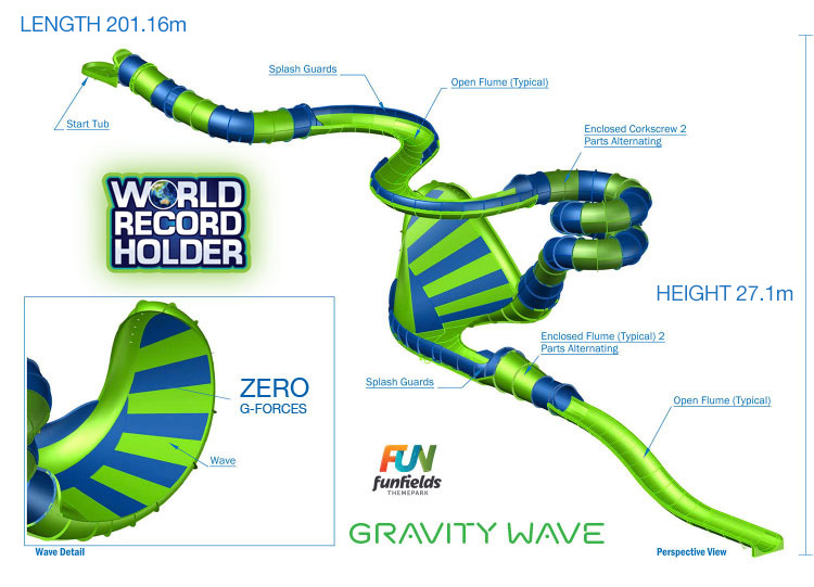 The Gravity Wave is only one of three record-breaking slides at Funfields, joining the popular Kraken Racer and Typhoon rides.
