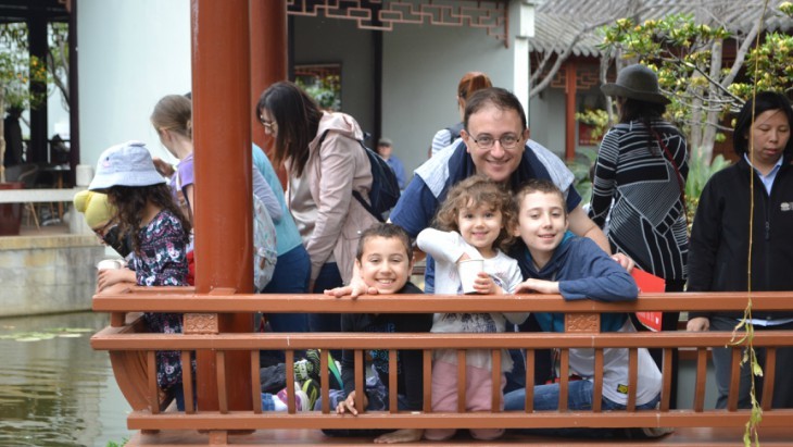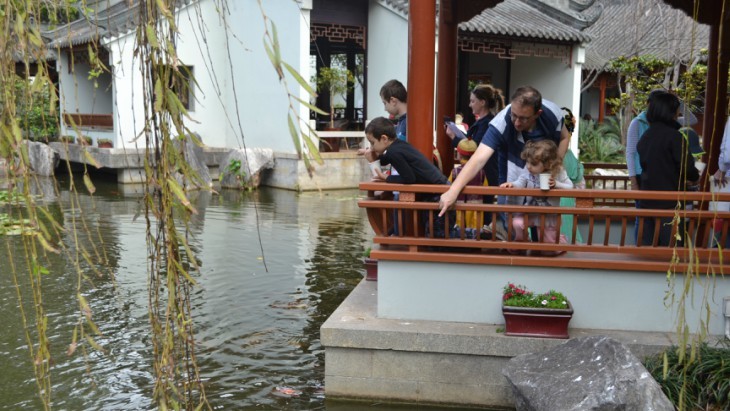 Next on the itinerary was a walk over to the Chinese Garden. Initially, the kids weren’t overly enthused after socialising with the animals but their attitude quickly changed when they immersed themselves in Chinese culture involving feeding the Koi and creating special Chinese-style scrolls.
