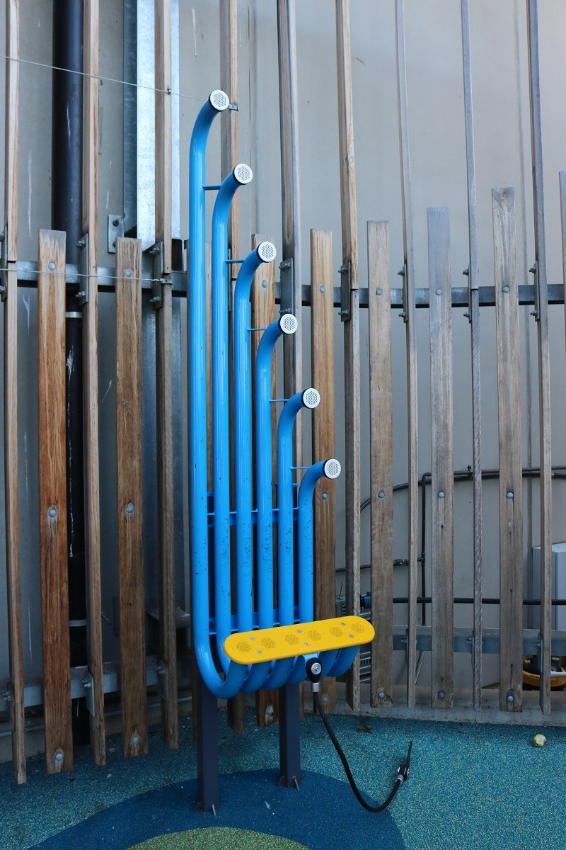 There is a spinning wheel, bouncy blocks (which squeak musically when jumped on), balance beams and xylophone for the younger crowd, but it's truly a great play area for older kids - quite a few of the climbing elements are really high and probably hard to manage for little ones who are not confident climbers. It is very cleverly designed for the small area it's in, however, and makes great use of the space.