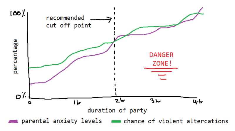 Time works differently at kid’s parties. Every hour in a normal environment = 5 hours at a kid’s party. It’s a bit like The Matrix. Hurrah's advice is to keep them shorter than 2 hours.