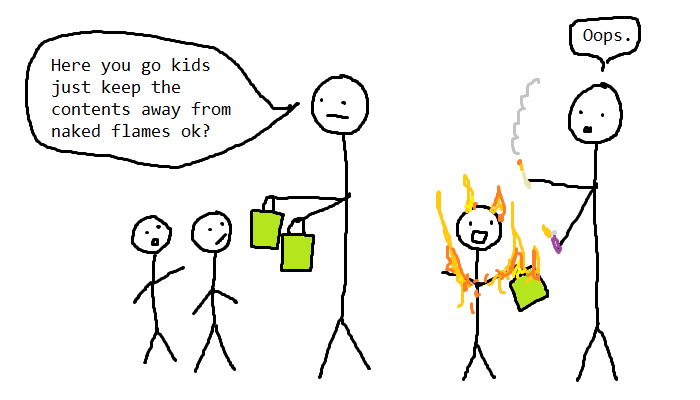 These days parents try to be clever and not fill them with sugar. But do we really need any more chokeable, flammable crap you brought off eBay from China in our homes? No thanks.