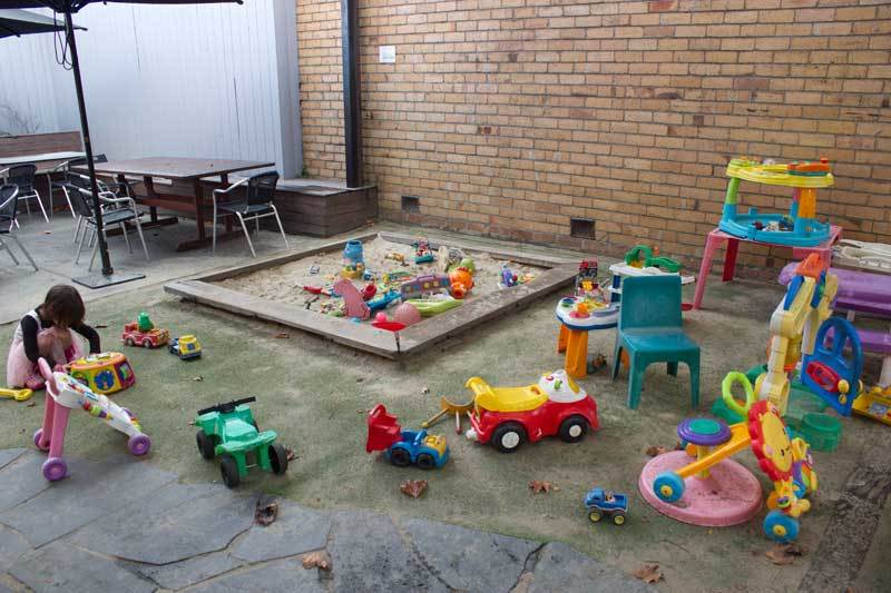 The play area for the children is quite large, and surrounded by tables so visibility isn't an issue. The sandpit is big enough for multiple children to fit inside and there are more toys than you think any kid could ever play with in a lifetime! Huge tables and workspaces, ride-ons, walkers and scooters, plus plenty of things to dig in the sand with.