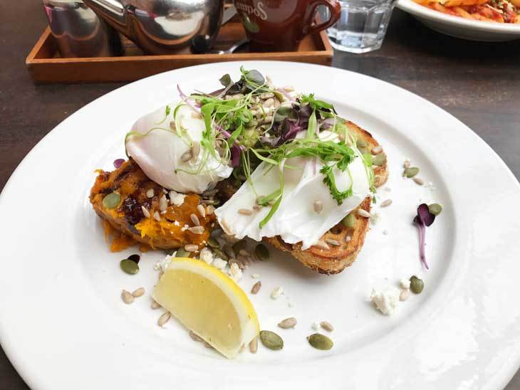 The Menu at Birdie Num Nums is quite breakfast-focused with plenty of traditional options to get you started - sourdough toasts, muesli, pancakes, French toast, eggy breakfasts and and baked beans with haloumi are offered. I went for the very popular Birdie's Double Smash: mashed avocado, feta, mashed pumpkin, poached eggs, and pumpkin seeds on multigrain, served with lemon ($16.50) - the balsamic glaze drizzled over the top was a standout!