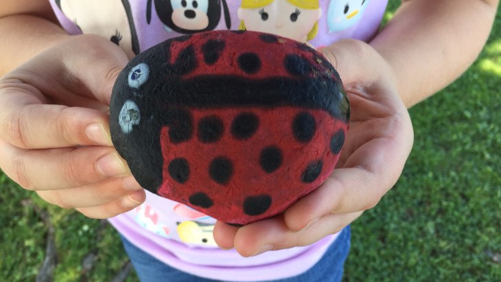 Sara Lindberg and her daughter(quoted above) managed to uncover a particularly gorgeous Ladybeetle rock on their first rock-hunting adventure. Lindberg shared her exciting tale with Parent Map, expressing the sheer joy and excitement when, just when they were about to give up hope, they found a real beauty, which they then shared with their local group, Kitsap Rocks.