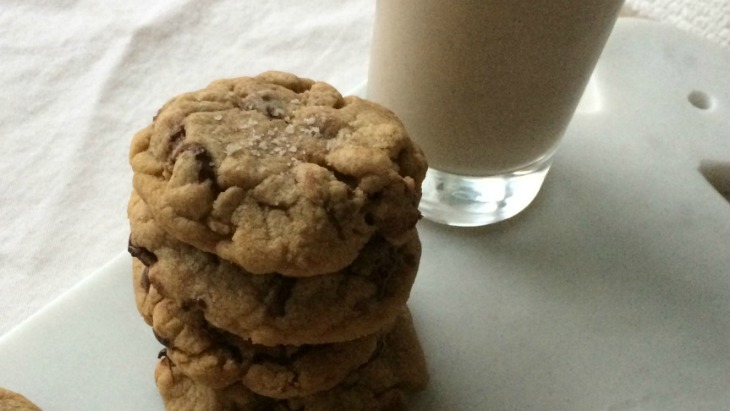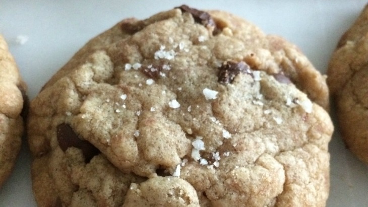 5. Preheat oven to 350 and bake cookies for 10 minutes, until bottom edges are starting to brown but the centre is still SLIGHTLY underdone. Allow to cool on the sheet for 1-2 minutes, sprinkle with sea salt, then leave to cool.