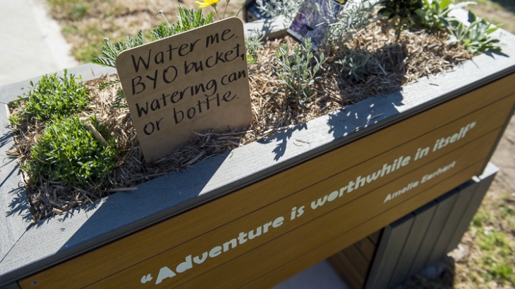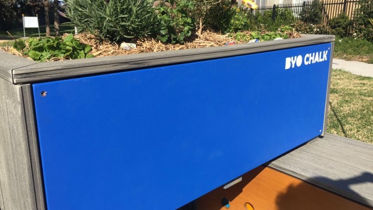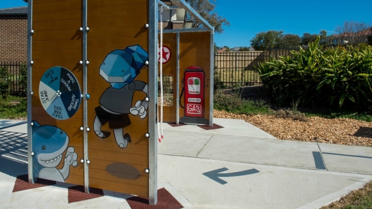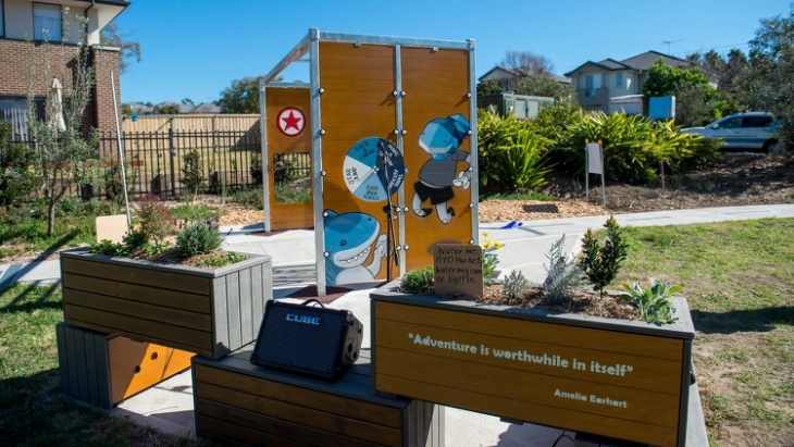 The local playgrounds have been designed around the senses of sight, sound, touch, smell, and movement and include "surprise and delight" features such as glow in the dark elements and secret messages that only appear when it rains. Some of the cool features at the Belrose space include play boxes, self-watering planters, chalk boards, spinning wheel games and a sensory "car wash" to explore. Locally designed and produced, the playground equipment is made from sustainable materials such as concrete, steel and wood, rather than plastic, and feature solar panels and colourful designs and animal characters by local street artist Miguel Gonzales.