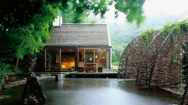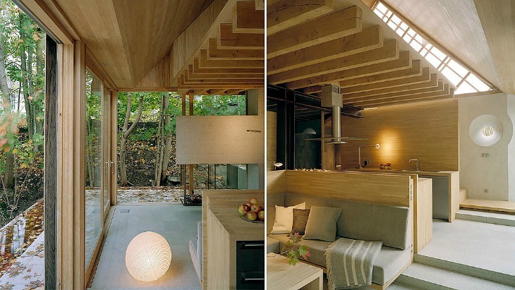 Created by architect Gert Wingardhs, this tiny, gorgeous house was inspired by the Swedish sauna and bathing ritual. It is on the sight of a country farmhouse, and has a creek nearby, a pool and sauna built to accompany the miniature dwelling, as well as sleeping and relaxing quarters. It's like living in a day spa! More information here.