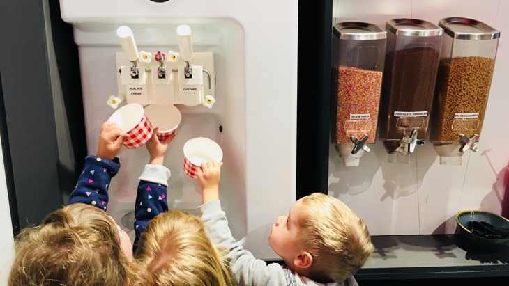 The dessert menu looks scrumptious - ooey gooey cake, cookies and more but the real winner is the dessert hut. It’s only $5 a cup for unlimited top-quality softserve or frozen custard plus toppings (sprinkles, syrup and moreish salted caramel balls). The kids ate until they could fit in no more.