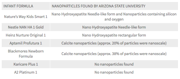 Friends of the Earth Australia recently commissioned an independent test into Australian baby formulas, and it was found that three out of the seven products tested including Nestlé NAN H.A. Gold 1 and Nature’s Way Kids Smart 1 contained 'nano-hydroxyapatite particles' which are potentially toxic, and banned for use in such products in Australia.