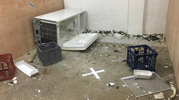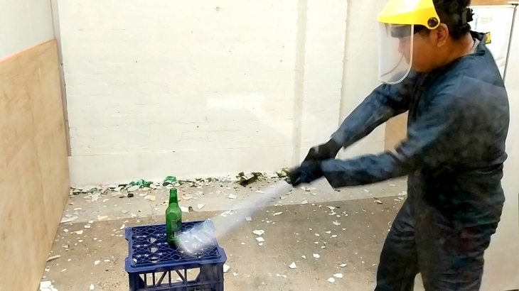 How does it work, you say? Well, you choose your 'weapon' and then you're taken to a 'break room' (gettit??) filled with a crate of smashable goodies (plus a few 'mystery items') to break to bits. You'll be given a pair of Breaking Bad style overalls, gloves and a face shield, and then you go to town on the items.