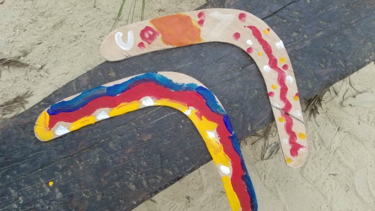 Soon enough we arrived at an open paddock where everyone was given a chance to throw a boomerang. The wind was causing some havoc and there were many shouts of “heads!” during our twenty minutes of boomerang training. We couldn’t hit a target to save our lives, but we could probably confuse a kangaroo with our screaming and laughing.
