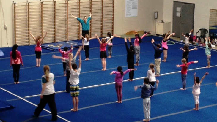 Gym Sports is a structured program run in the Gymnastics Centre of the Olympic Park Sports Centre. The class runs for two hours and is suitable for children aged from 5 – 12 years old. There were around 30 children in the class we attended but thankfully the group was split in to three smaller groups based on age, with an instructor leading each group.
