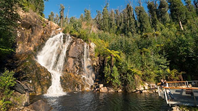 In the other direction now, head out to Marysville, in the Murrindindi region, you'll find the Steavenson Falls, a huge 122-metre, 5-cascade sheet of water and deservedly famous for it. Take a trip to the viewing platform either above (which stretches across the river) or below, which is about a 350-metre walk through the towering eucalypts.