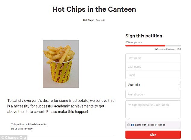 The petition pleads for the public's support and suggests that hot chips can make a contribution to their academic success. Ha, nice try boys!