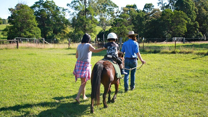 After our introduction to farm work we were given some farm life r&r in the form of pony rides (those over 8 are offered horse riding)! My son was thrilled to saddle up and take a walk around the farm, even though he was a little nervous to climb aboard, the staff were so friendly and gentle with him that he was at ease in no time. That's the beauty of farm life, nothing ever seems to be too hard, their simple, relaxed way of living is so contagious that I'm sure we drove at a snails pace back to Sydney.