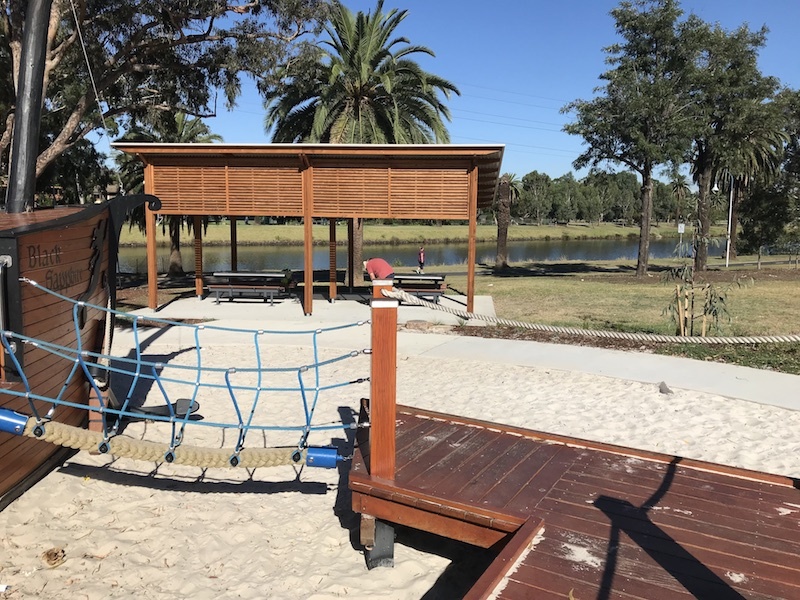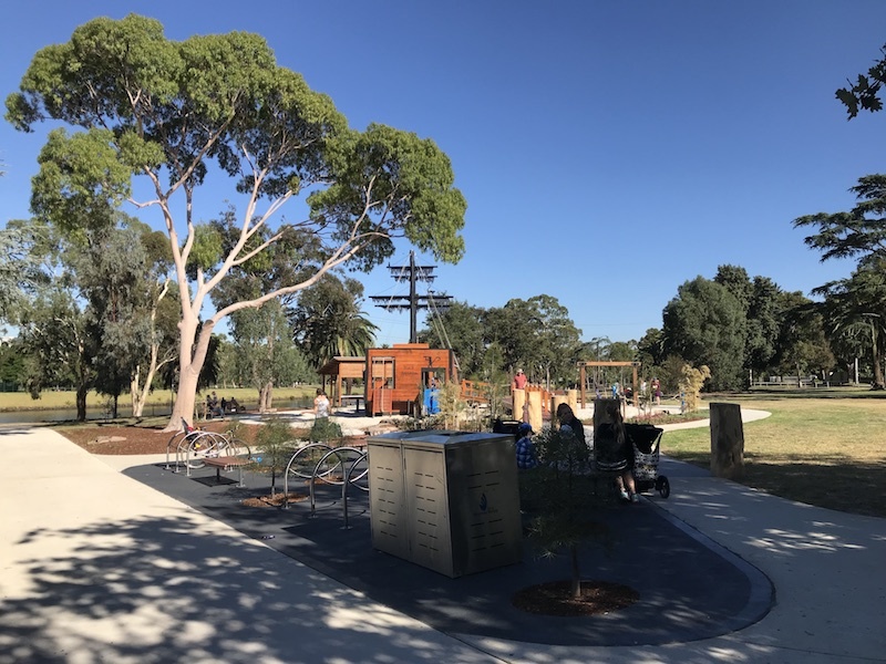 The ship itself is still as full as ever of fun props for imaginary play, including ship's wheel, ship's bell, and treasure map, which will keep the kids occupied while you can take advantage of the new seating among the landscaping. The upgrade of Riverside Park is part of the implementation of the Maribyrnong River Master Plan.