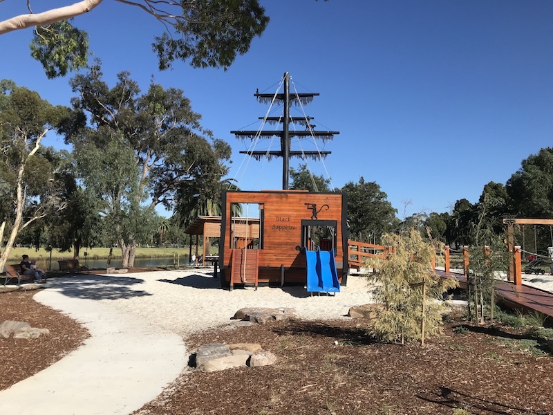 We all know the fun the impressive Black Sapphire Pirate Ship brings the kids to the local Aberfeldie park, but it's now back and bigger than ever in an upgrade of the area now known as Riverside Park on the Maribyrnong River.