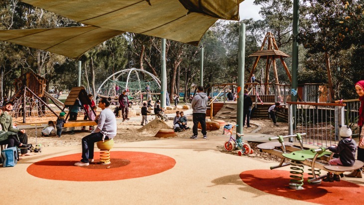 This award-winning nature playground (did you know it was voted the BEST playground in NSW?!) has been designed so as to blend into the natural environment- so be careful you don't miss it! There are water play elements (exactly what you'll need this Summer) as well as a rock climbing wall, logs to balance on, a big sandpit with diggers, a nest swing, a super slide, a flying fox, and lots more. Read the review here.