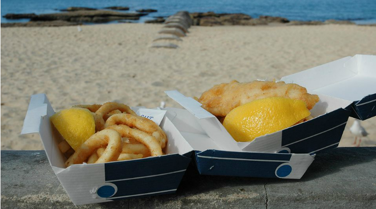 It's an Australian past-time- what Aussie doesn't have a childhood memory of a Summer's day or evening by the water with family, with a parcel of wax-paper covered fish and chips on their laps?