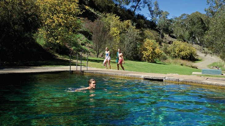 Found inside the Kosciuszko National Park, the thermal pool is fed by a natural spring, and can be accessed from the car park via a short, 700m walk. It's steep though, so keep it in mind if you are taking little ones. It's about 27 degrees all year long, measures about 20 metres long and 2.5 metres deep, and the main pool gently waterfalls into a shallower children's wading pool. Explore the caves, and enjoy a picnic in the nearby area. Drive: 5 hours, 20 minutes