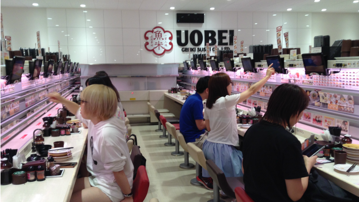 Apparently, 'Magic Touch' isn't the only restaurant serving sushi via bullet train. At 'Smart Sushi' in Suidobashi, they offer the same system of ordering via a tablet or iPad, and shortly after, a mini “shinkansen” meaning bullet train will be steam rolling towards your table in record time. At Genki Sushi in Hawaii, they have sushi bullet trains too, just press buttons to order your food, and press another button to send the train hurtling back to the kitchen-it couldn't be easier! Or there's Uobei also in Japan, (pictured) that looks more like a computer lab than a sushi train or restaurant. Plates go for a modest $1 or so, so it's not the grandest of sushi, but it's a cool experience nonetheless. High-speed conveyor belts stocked with up to 3 plates of sushi whizz to you in record time, and you just press a button to send the empty plates back.